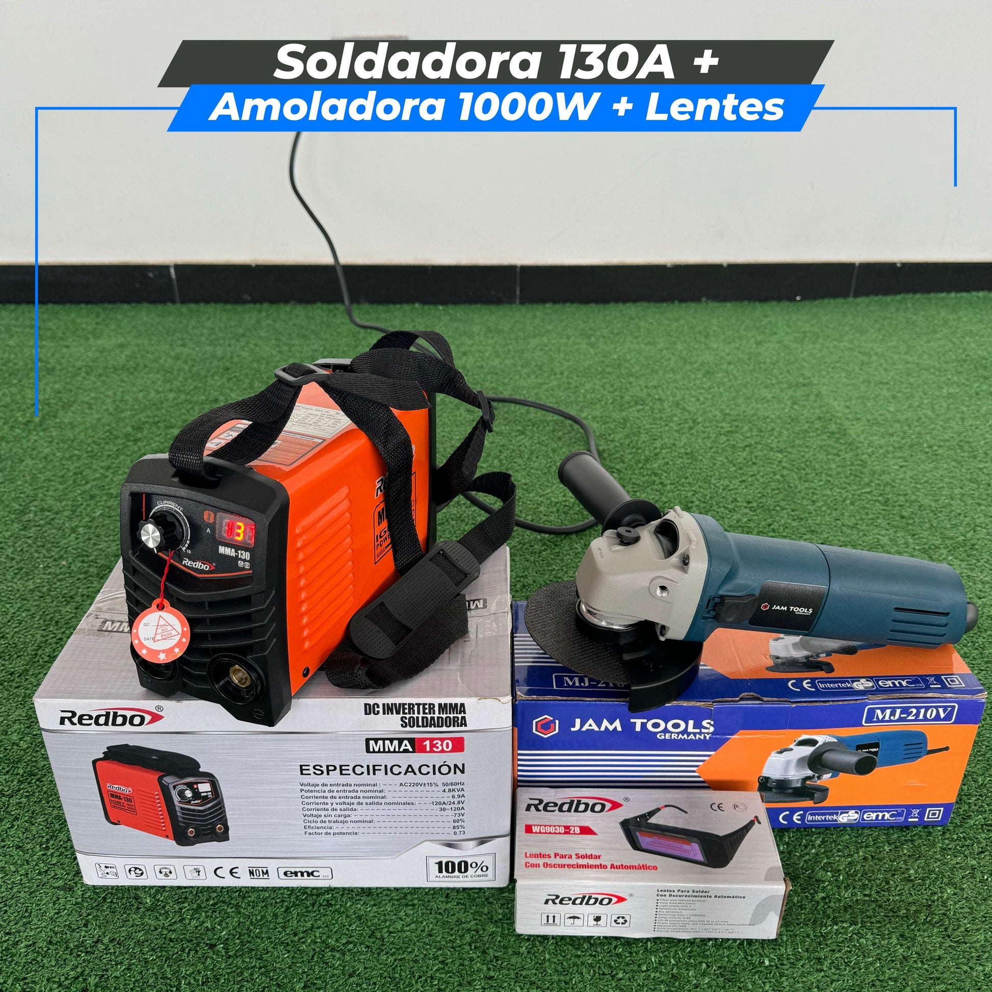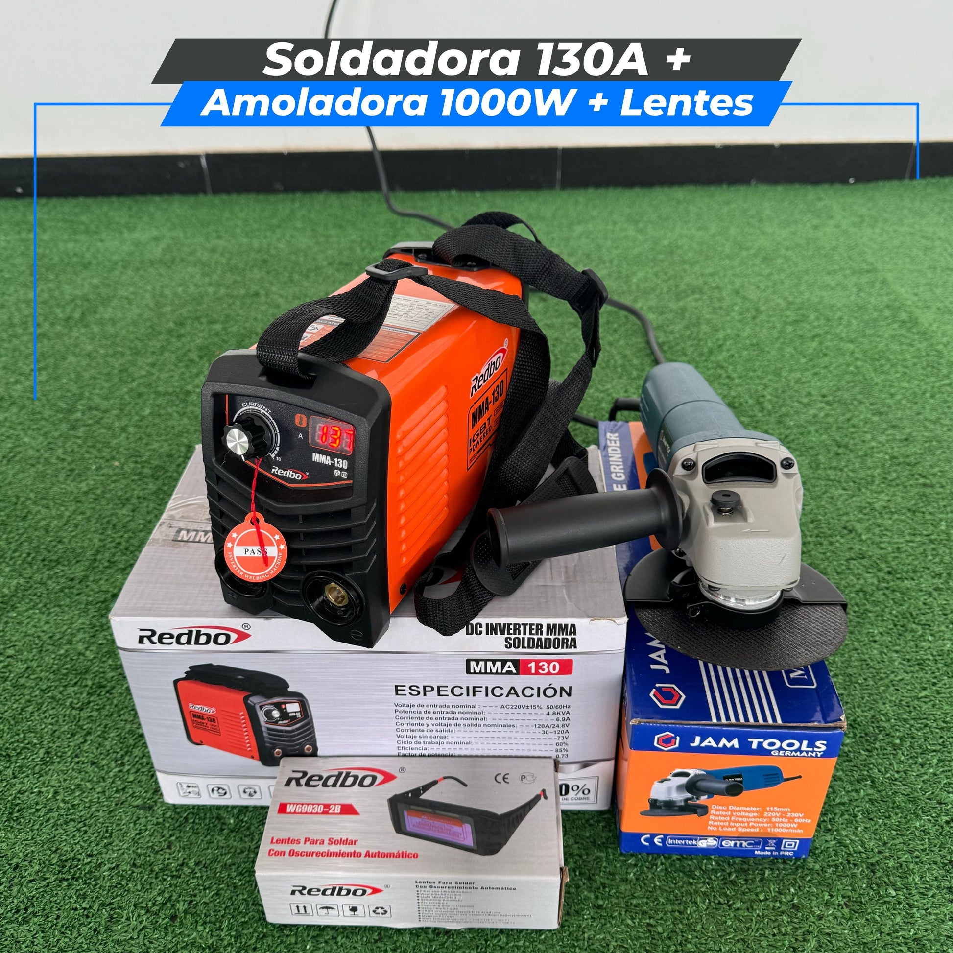 ✅ 🔧 Combo Soldadora de 130A + Amoladora de 1000W + Lentes Fotosensibles 🔧